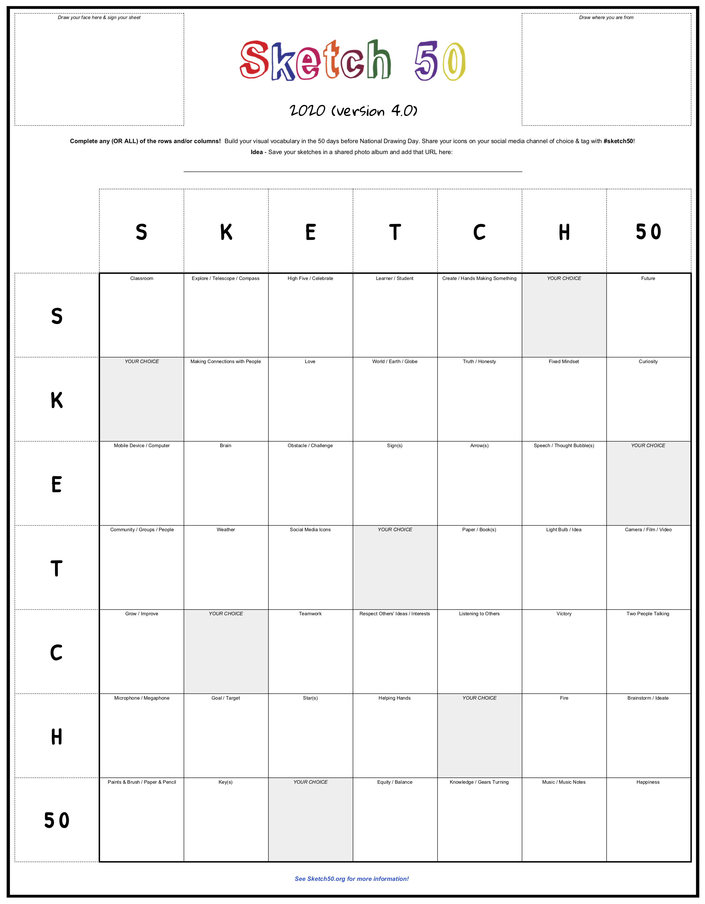 Calling all educators, students, parents – oh, heck – CALLING EVERYONE! You’re invited to come join us for the 2020 edition of #SKETCH50!